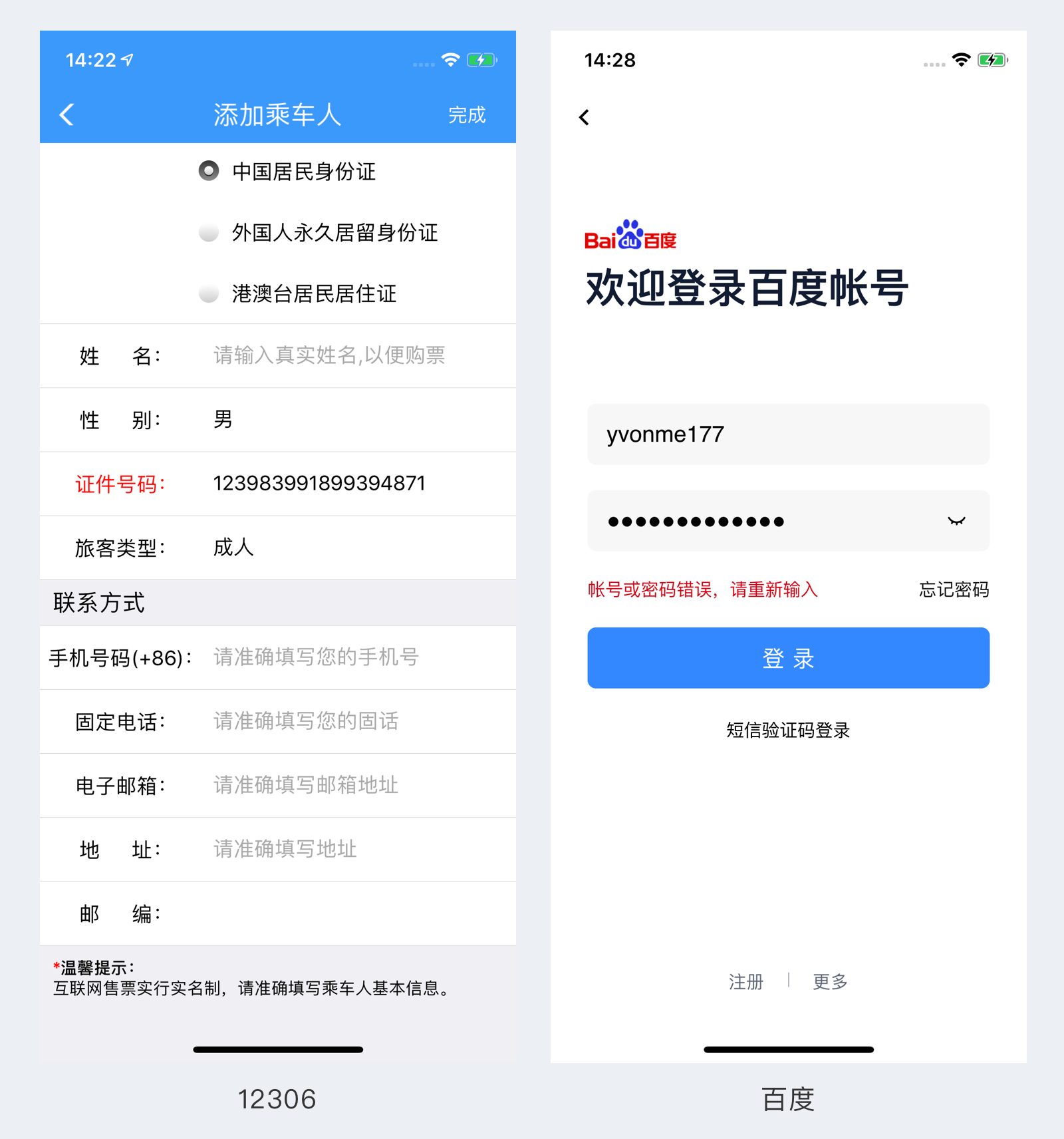 表单是我们在网页和APP中使用频率比较高的模块,大多是数据采集的功能,并且都是需要用户自己填写或者编辑的,因此会在很多功能模块中见到,例如12306的信息填写页,个人中心信息、评论和动态发布以及登录页等等。